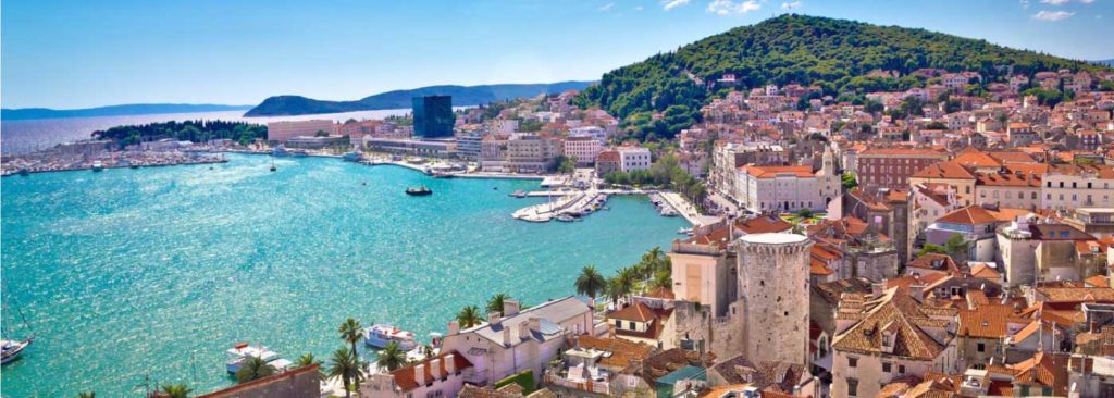 Split is the second-largest city of Croatia and the largest city of the region of Dalmatia, with about 200,000 people living in its urban area. It lies on the eastern shore of the Adriatic Sea and is spread over a central peninsula and its surroundings. An intraregional transport hub and popular tourist destination, the city is linked to the Adriatic islands.